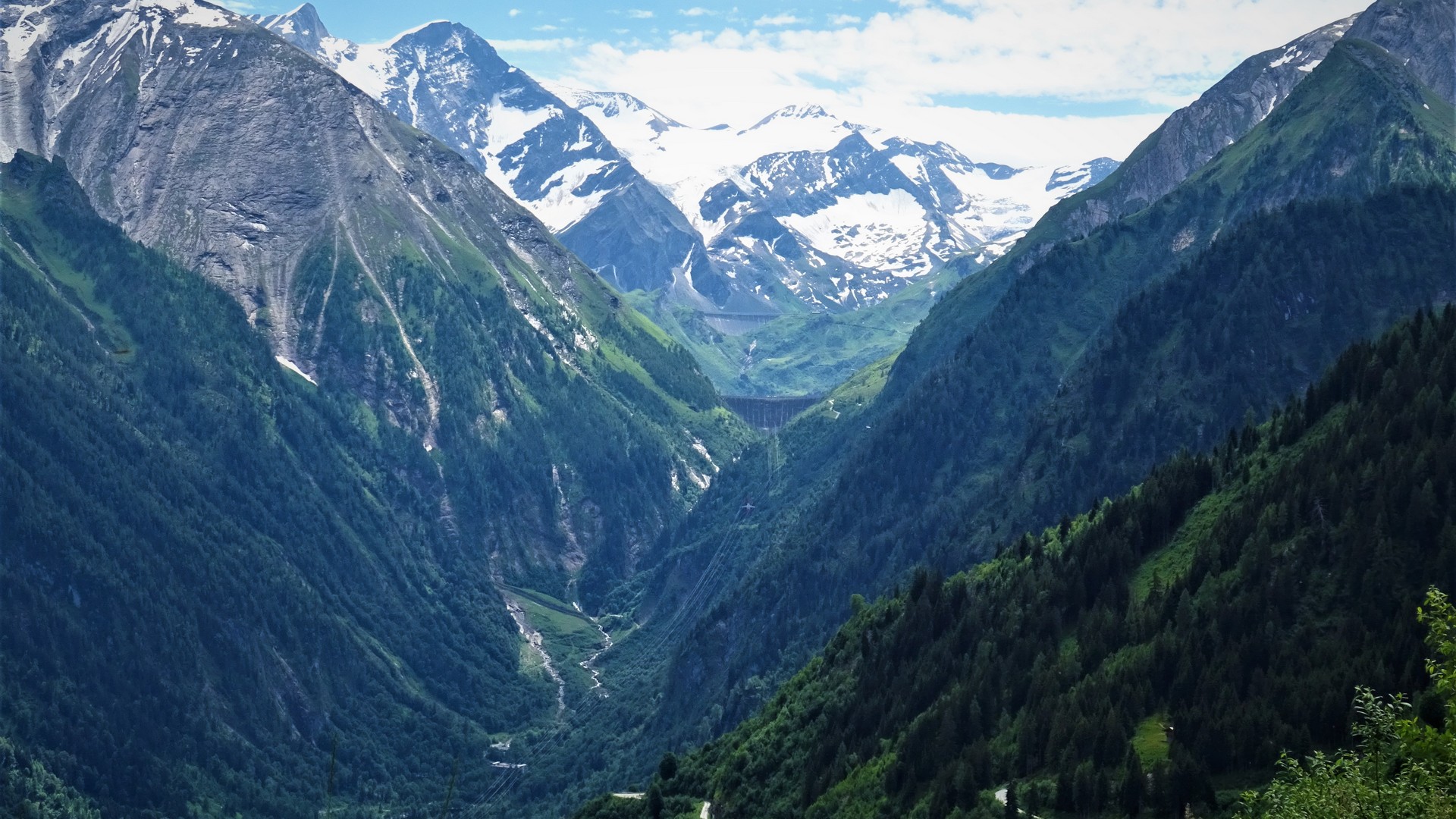 Perspektive vom Maiskogel direkt zu den Staumauern