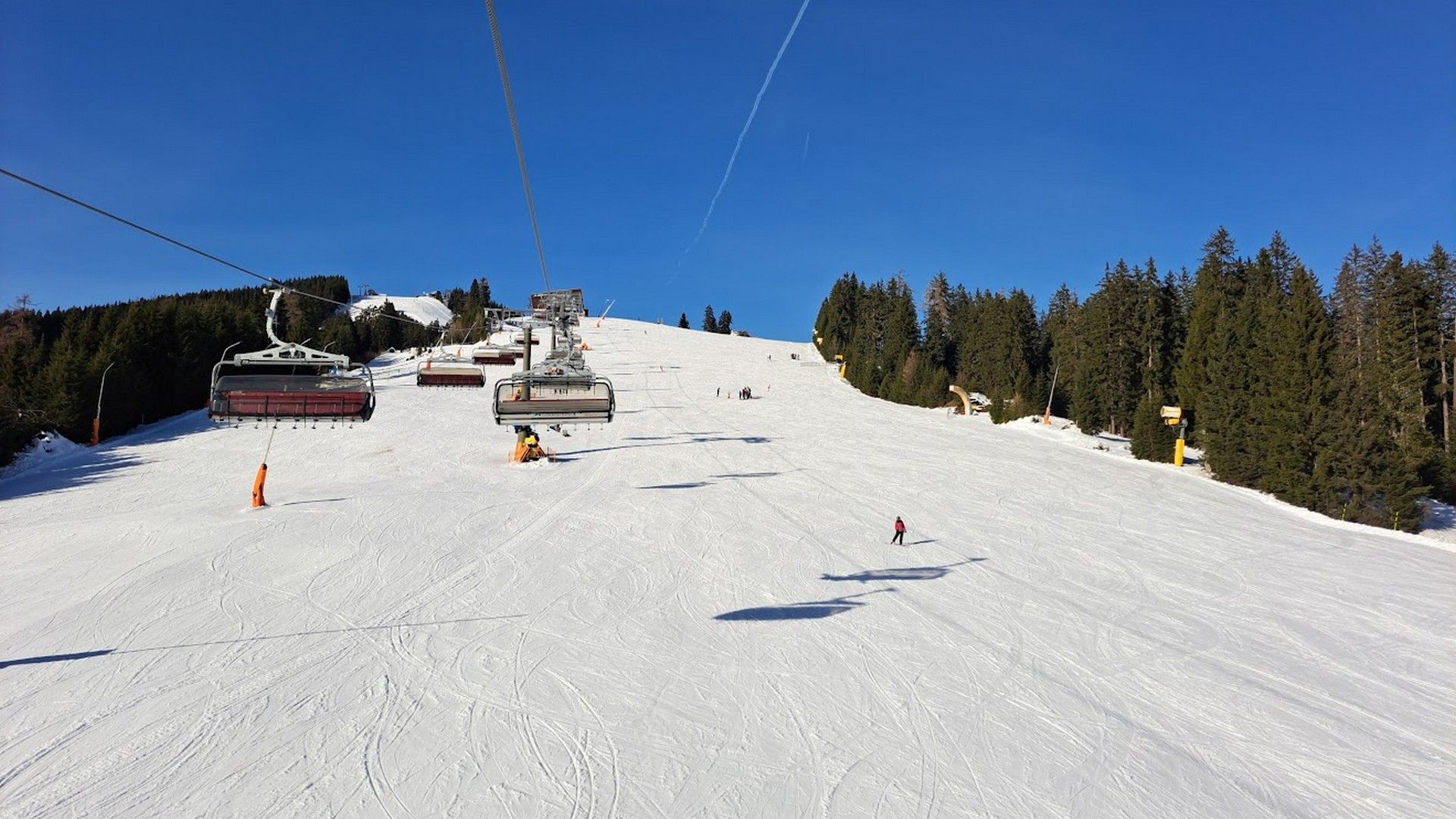 Die Trass-Abfahrt (rechts) ist die legendäre, extrem steile schwarze Piste auf der Schmittenhöhe mit bis zu 70 % Gefälle – ein echtes Highlight für Könner. Die sogenannte Standardabfahrt (links) hingegen ist die klassische, längere Talabfahrt von der Schmittenhöhe nach Zell am See.